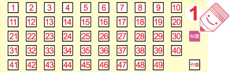 在選號區中,自行從01~49的號碼中填選6個號碼進行投注。